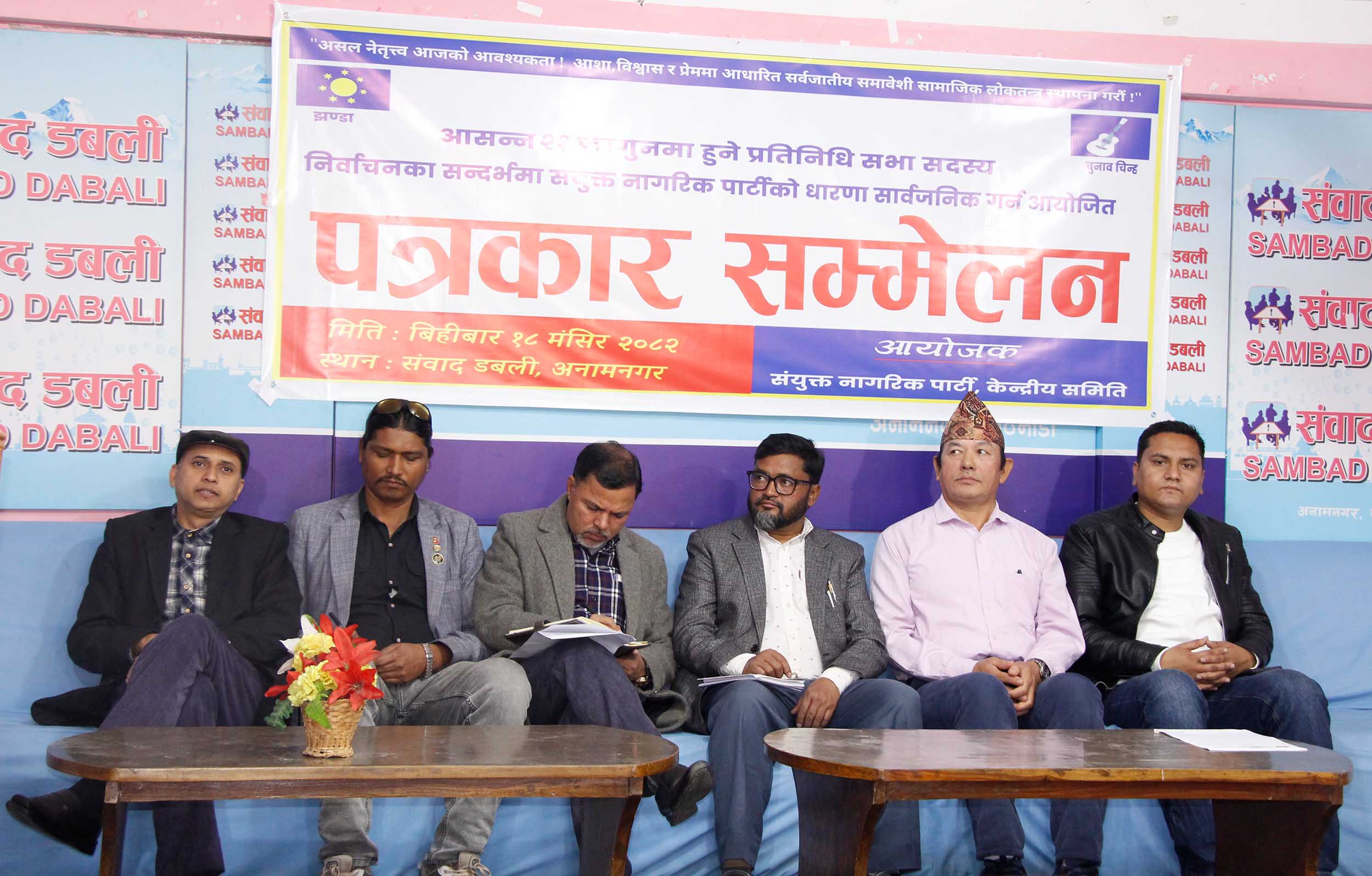 २०८२ मंसिर १८ गते/ काठमाडौं । संयुक्त नागरिक पार्टीले पूर्वनिर्धारित समयमा चुनाव सम्पन्न नभए देश दुर्घटनामा जाने चेतवानी दिएको छ । बिहिबार राजधानीको संवाद डबलीमा पत्रकार सम्मेलनको आयोजना गरी सरकार र दलहरु चुनावी प्रक्रियाप्रति जिम्मेवार हुनसमेत पार्टीले आग्रह गरेको छ ।