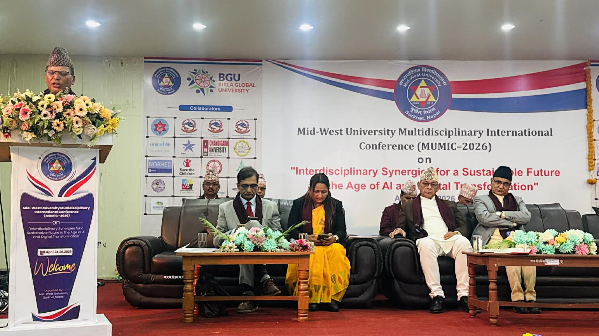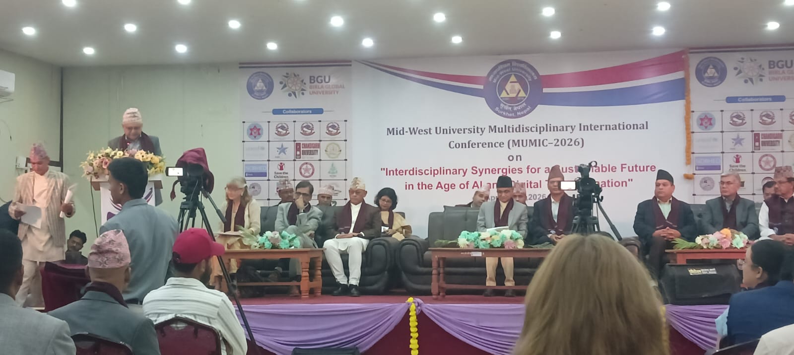 सुर्खेत, बैशाख ११ । मध्यपश्चिम विश्वविद्यालयमा बहुविषयक अन्तरराष्ट्रिय सम्मेलन–२०२६ शुक्रबार एक औपचारिक समारोहका बीच भव्य रूपमा समुद्घाटन गरिएको छ।
