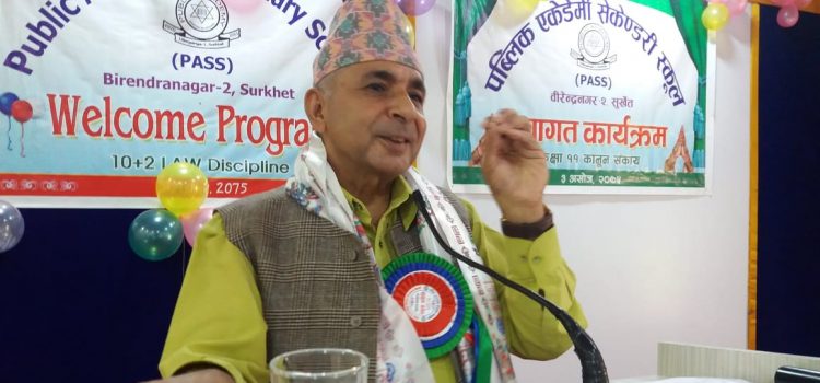 सुर्खेत ३ असोज / सुर्खेतः उच्च अदालत सुर्खेतका मुख्य न्यायाधिस हरिकुमार पोखरेलले न्यायिक क्षेत्रमा दक्ष जनशक्ति अभावका कारण कानुनी कामा कारबाहीमा समस्या परिरहेको बताए । पब्लिक एकेडेमी माध्यमिक विद्यालय सुर्खेतले वीरेन्द्रनगरमा आयोजना गरेको कानुन संकायका विद्यार्थीलाई स्वागत कार्यक्रमलाई सम्बोधन गर्दै मुख्य न्याधिस पोखरेलले यस्तो बताएका हुन् । उनले विगत देखि …